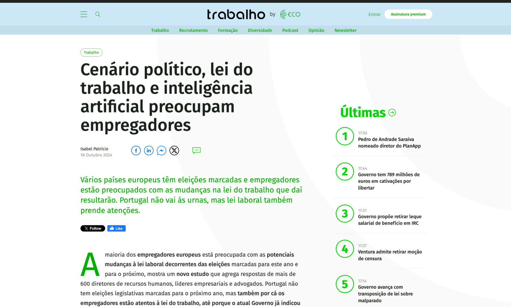 Cenário político, lei do trabalho e inteligência artificial preocupam empregadores